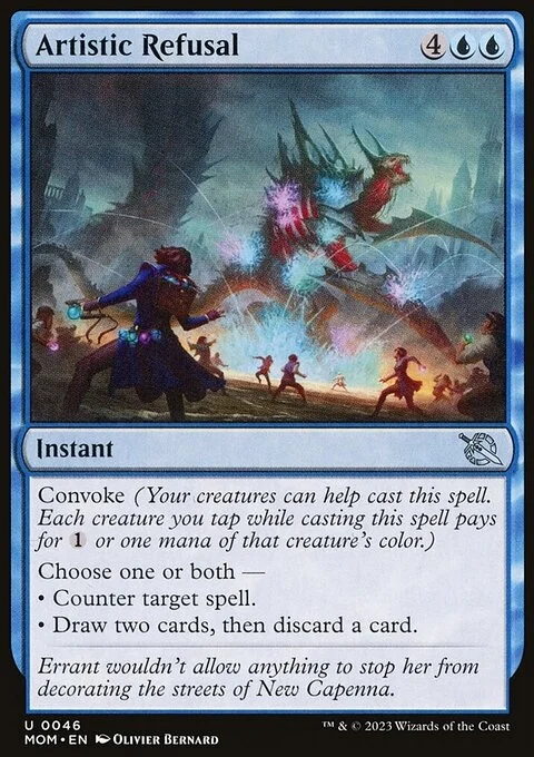 Convoke (Your creatures can help cast this spell. Each creature you tap while casting this spell pays for {1} or one mana of that creature's color.) Choose one or both — • Counter target spell. • Draw two cards, then discard a card.