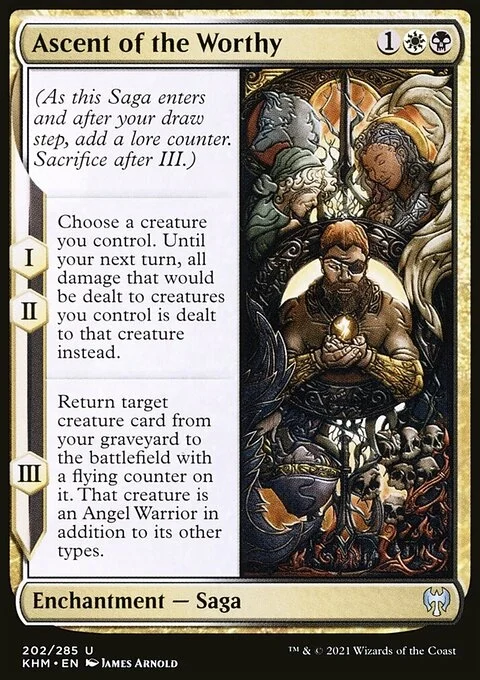 III — Return target creature card from your graveyard to the battlefield with a flying counter on it. That creature is an Angel Warrior in addition to its other types.