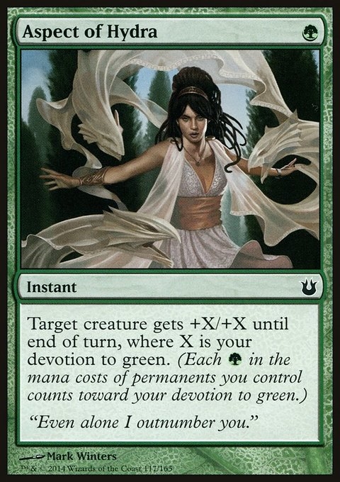Target creature gets +X/+X until end of turn, where X is your devotion to green. (Each {G} in the mana costs of permanents you control counts toward your devotion to green.)