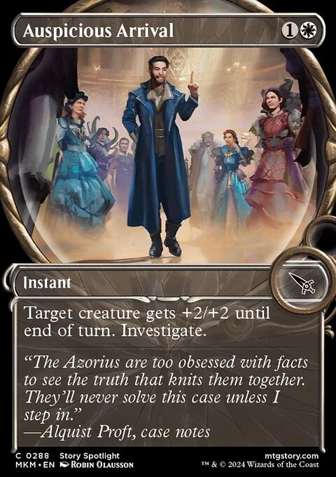 Target creature gets +2/+2 until end of turn. Investigate. (Create a Clue token. It's an artifact with "{2}, Sacrifice this token: Draw a card.")