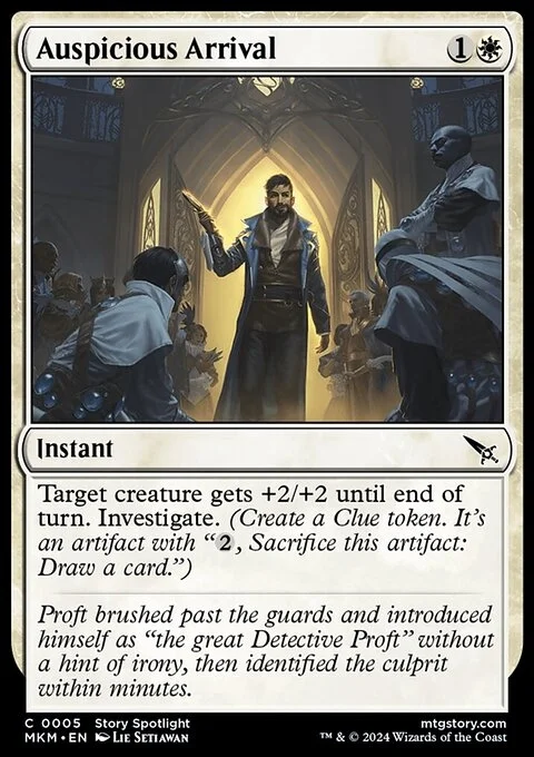 Target creature gets +2/+2 until end of turn. Investigate. (Create a Clue token. It's an artifact with "{2}, Sacrifice this token: Draw a card.")