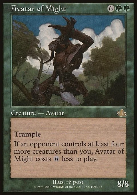 If an opponent controls at least four more creatures than you, this spell costs {6} less to cast. Trample (This creature can deal excess combat damage to the player or planeswalker it's attacking.)
