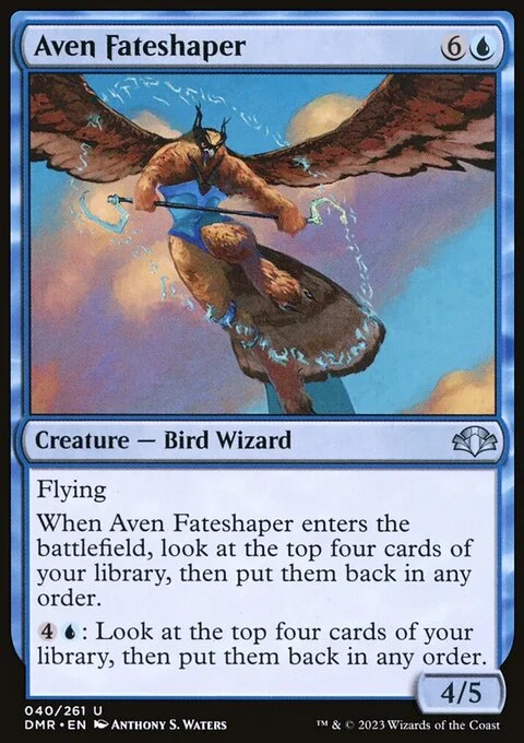Flying When this creature enters, look at the top four cards of your library, then put them back in any order. {4}{U}: Look at the top four cards of your library, then put them back in any order.