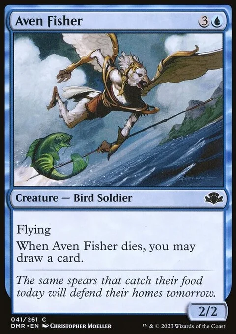 Flying (This creature can't be blocked except by creatures with flying or reach.) When this creature dies, you may draw a card.