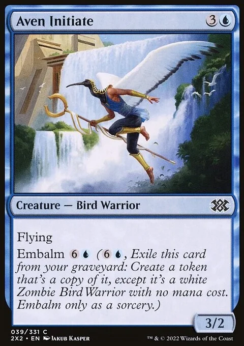 Flying Embalm {6}{U} ({6}{U}, Exile this card from your graveyard: Create a token that's a copy of it, except it's a white Zombie Bird Warrior with no mana cost. Embalm only as a sorcery.)