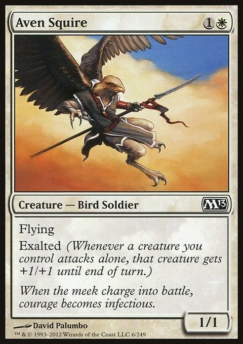 Flying Exalted (Whenever a creature you control attacks alone, that creature gets +1/+1 until end of turn.)