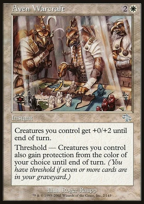 Creatures you control get +0/+2 until end of turn. Threshold — If seven or more cards are in your graveyard, choose a color. Creatures you control also gain protection from the chosen color until end of turn.