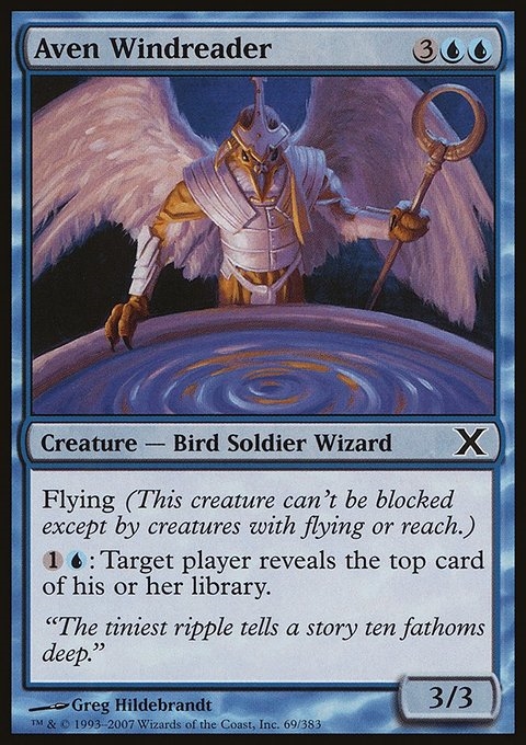 Flying (This creature can't be blocked except by creatures with flying or reach.) {1}{U}: Target player reveals the top card of their library.
