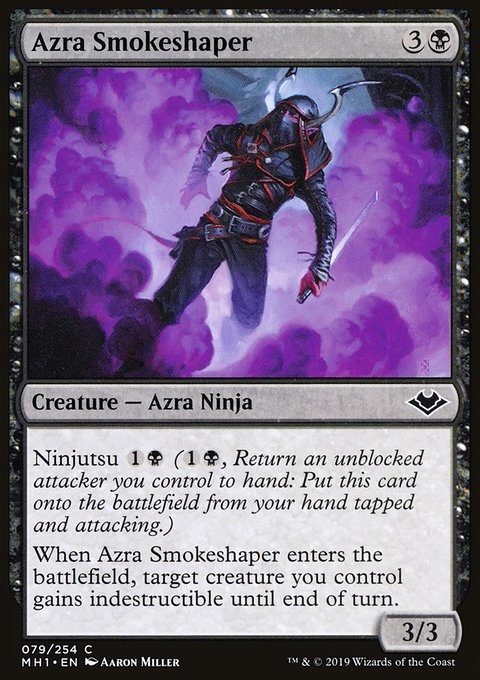 Ninjutsu {1}{B} ({1}{B}, Return an unblocked attacker you control to hand: Put this card onto the battlefield from your hand tapped and attacking.) When this creature enters, target creature you control gains indestructible until end of turn.