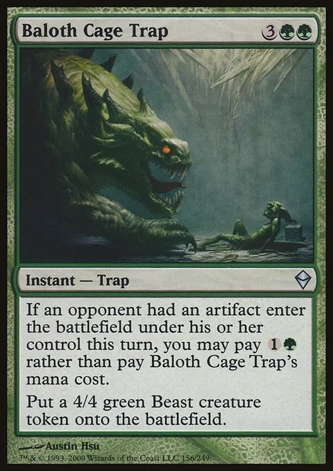 If an opponent had an artifact enter the battlefield under their control this turn, you may pay {1}{G} rather than pay this spell's mana cost. Create a 4/4 green Beast creature token.