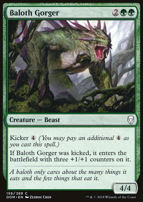 Kicker {4} (You may pay an additional {4} as you cast this spell.) If Baloth Gorger was kicked, it enters the battlefield with three +1/+1 counters on it.