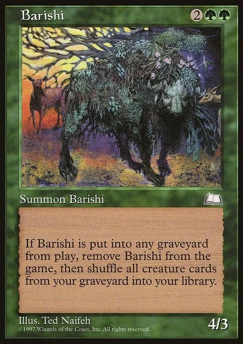 When this creature dies, exile it, then shuffle all creature cards from your graveyard into your library.