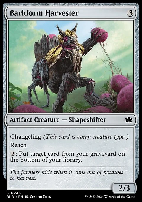 Changeling (This card is every creature type.) Reach {2}: Put target card from your graveyard on the bottom of your library.