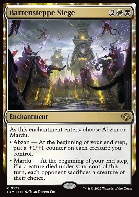 • Mardu — At the beginning of your end step, if a creature died under your control this turn, each opponent sacrifices a creature of their choice.