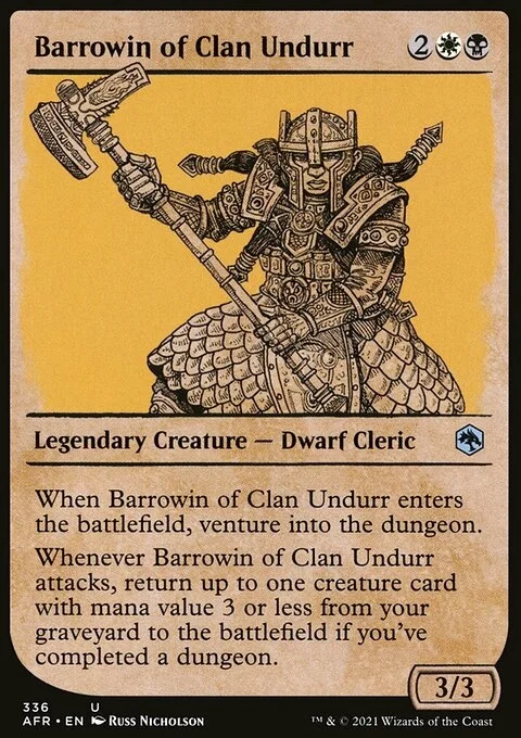 When Barrowin of Clan Undurr enters the battlefield, venture into the dungeon. (Enter the first room or advance to the next room.)