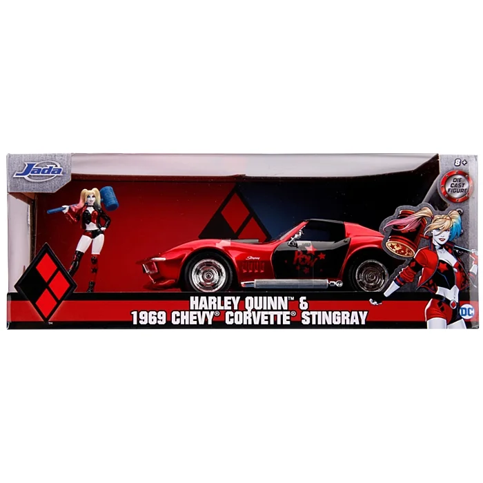 One of Gotham’s most maniacal criminals, Harley Quinn is by no means a stranger to style! Standing alongside her matching 1969 Chevy Corvette 1/24th Scale Die-Cast Vehicle from Jada Vehicles, there’s no heist out of her reach! With an exceptionally applied metallic paint job, an openable hood and doors, this awesome replica comes with a Harley Quinn figure to ensure it's perfect for DC fans everywhere.