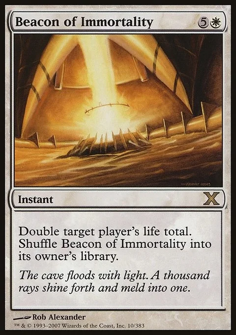 Double target player's life total. Shuffle Beacon of Immortality into its owner's library.