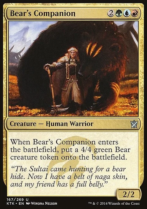 When Bear's Companion enters the battlefield, create a 4/4 green Bear creature token.