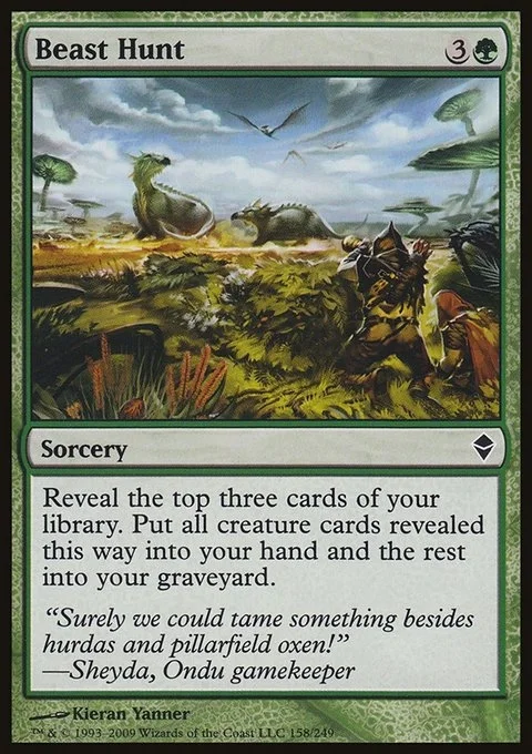 Reveal the top three cards of your library. Put all creature cards revealed this way into your hand and the rest into your graveyard.