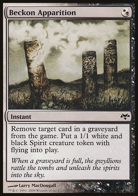 Exile target card from a graveyard. Create a 1/1 white and black Spirit creature token with flying.