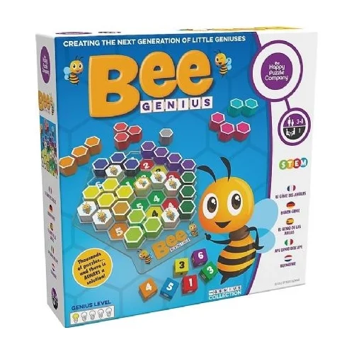 Following on from the huge success of The Genius Square, we*re delighted to introduce Bee Genius, the newest member of the Genius Collection, designed especially for little geniuses! Roll the six dice to determine the locations of the worker bees. The challenge is then to fit all 11 of the coloured shapes around the bees, with no gaps, to complete the perfect honeycomb!
