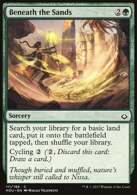 Search your library for a basic land card, put it onto the battlefield tapped, then shuffle. Cycling {2} ({2}, Discard this card: Draw a card.)