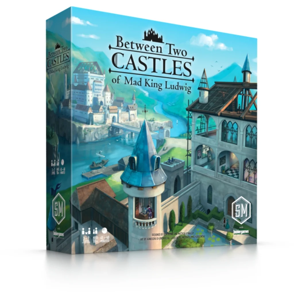 Between Two Castles of Mad King Ludwig is published by Stonemaier Games as part of a collaboration with Bezier Games. The king demands a castle! You are a world-renowned master builder who has been asked by the Mad King Ludwig to help design his castles. Projects of such significance require the expertise of more than one person, so for each assignment you are paired with another master builder to execute your grandiose plans. Will your planning and collaborative skills be enough to design the most impressive castles in the world? Between Two Castles of Mad King Ludwig is a competitive tile-drafting game in which each tile is a room in a castle. You work together with the player on your left to design one castle, and with the player on your right on another castle. On each turn you select two tiles from your hand, reveal them, then work with your partners to place them. To win, you have to share your attention and your devotion between two castles. This game includes 147 regular room tiles with unique art, 83 other tiles, 20 bonus cards, 7 custom wooden castle tokens, 1 full-colour, double-sided score pad, and a 4-piece Game Trayz custom insert that reduces setup time to less than 60 seconds.