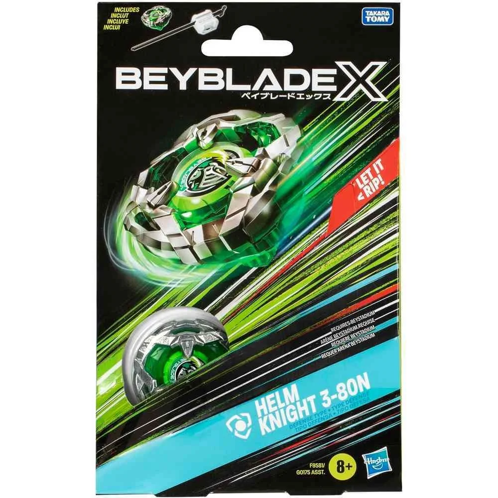 Experience the thrill of the next generation of Beyblade stadiums, launchers and tops: Beyblade X with the Beyblade X Helm Knight 3-80N Starter Pack which includes 1 right-spinning Defense Type top and launcher (Beystadium required, sold separately). Launch right into battle or reconfigure the interchangeable blade, ratchet, and bit of this Starter Pack with those of other Beyblade X tops (sold separately) to create your own unsurpassable Bey. Beyblade X features the X-Celerator Gear System innovation to level-up your game. When the gear of a Beyblade X top engages the rail of the Beystadium arena, it can super-accelerate into an Xtreme Dash rocketing it around the stadium for crushing collisions and epic bursts. Bladers launch their tops into fierce clashes against their opponent’s scoring points with each confrontation – first to score 4 points wins. Hasbro Beyblade toys with authentic Takara Tomy die-cast metal tops make great kids gifts for boys and girls ages 8 and up.