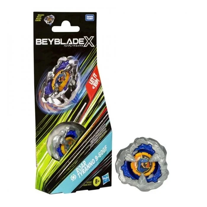 Experience the thrill of the next generation of Beyblade stadiums, launchers and tops: Beyblade X with the Beyblade X Roar Tyranno 9-60GF Booster Pack Set which includes 1 right-spinning Attack Type top (Beystadium and launcher required, sold separately). Launch right into battle or reconfigure the interchangeable blade, ratchet, and bit of this Booster Pack with those of other Beyblade X tops (sold separately) to create your own unsurpassable Bey. Beyblade X features the X-Celerator Gear System innovation to level-up your game. When the gear of a Beyblade X top engages the rail of the Beystadium arena, it can super-accelerate into an Xtreme Dash rocketing it around the stadium for crushing collisions and epic bursts. Bladers launch their tops into fierce clashes against their opponent’s scoring points with each confrontation – first to score 4 points wins. Hasbro Beyblade toys with authentic Takara Tomy die-cast metal tops make great kids gifts for boys and girls ages 8 and up.