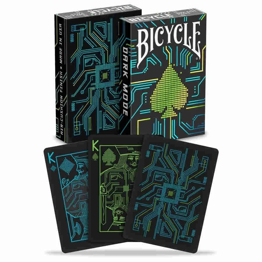 Bicycle® Dark Mode playing cards bring energy to your game night and cardistry moves! Utilizing a reversed color scheme the Bicycle® Dark Mode custom card back and court cards bring the connectivity of our digital world to your nearest card table.