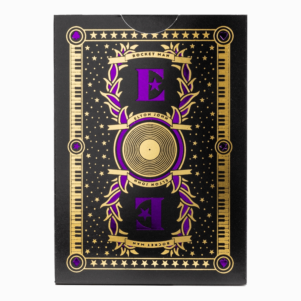 Featuring iconic artwork of Elton John on the court cards and golden holographic piano keys on the tuck, take a stylish journey down the Yellow Brick Road with every hand.