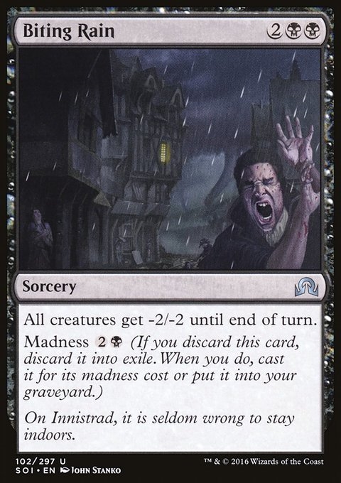 All creatures get -2/-2 until end of turn. Madness {2}{B} (If you discard this card, discard it into exile. When you do, cast it for its madness cost or put it into your graveyard.)