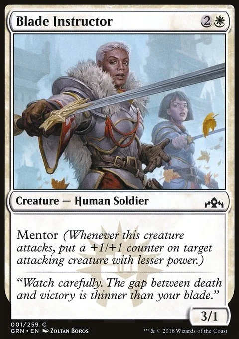 Mentor (Whenever this creature attacks, put a +1/+1 counter on target attacking creature with lesser power.)