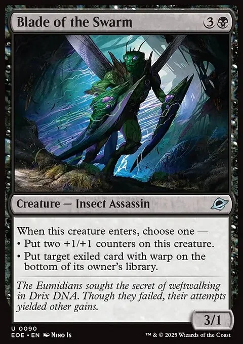 When this creature enters, choose one — • Put two +1/+1 counters on this creature. • Put target exiled card with warp on the bottom of its owner's library.