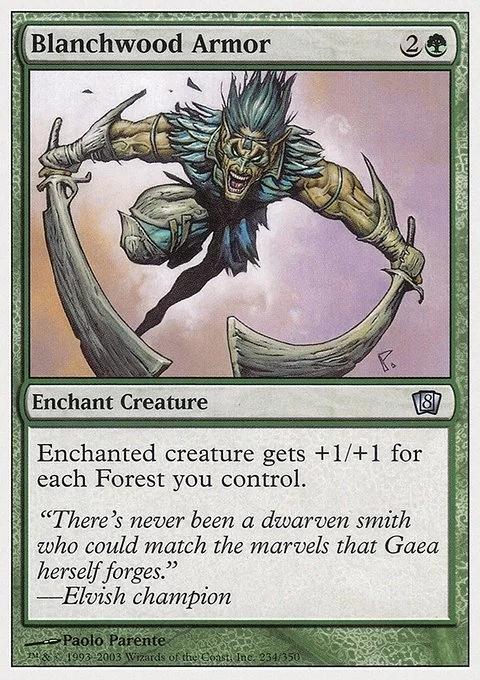 Enchant creature Enchanted creature gets +1/+1 for each Forest you control.