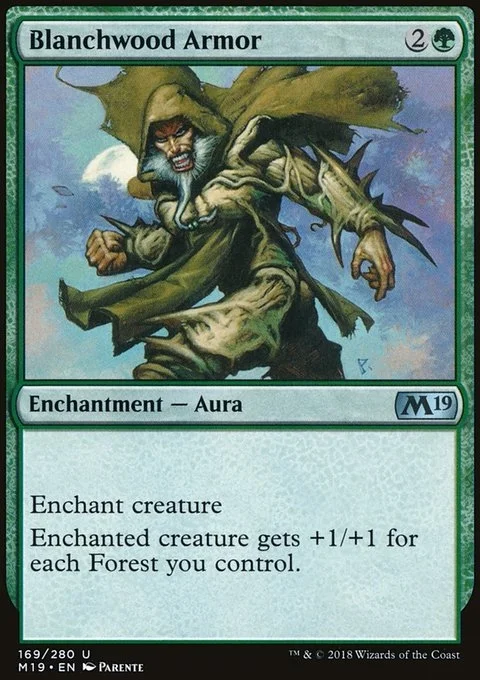 Enchant creature Enchanted creature gets +1/+1 for each Forest you control.