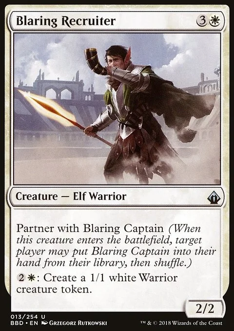 Partner with Blaring Captain (When this creature enters the battlefield, target player may put Blaring Captain into their hand from their library, then shuffle.) {2}{W}: Create a 1/1 white Warrior creature token.