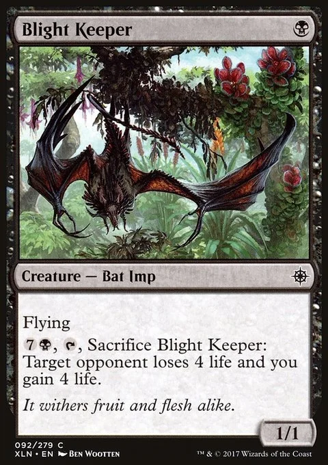 Flying {7}{B}, {T}, Sacrifice this creature: Target opponent loses 4 life and you gain 4 life.