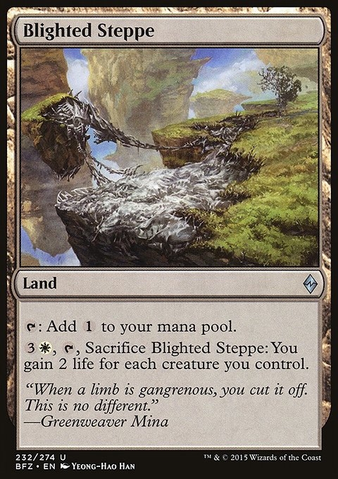 {T}: Add {C}. {3}{W}, {T}, Sacrifice Blighted Steppe: You gain 2 life for each creature you control.