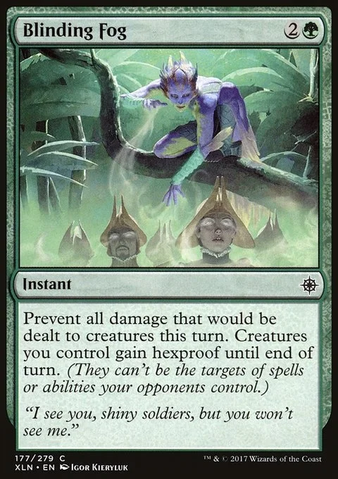 Prevent all damage that would be dealt to creatures this turn. Creatures you control gain hexproof until end of turn. (They can't be the targets of spells or abilities your opponents control.)