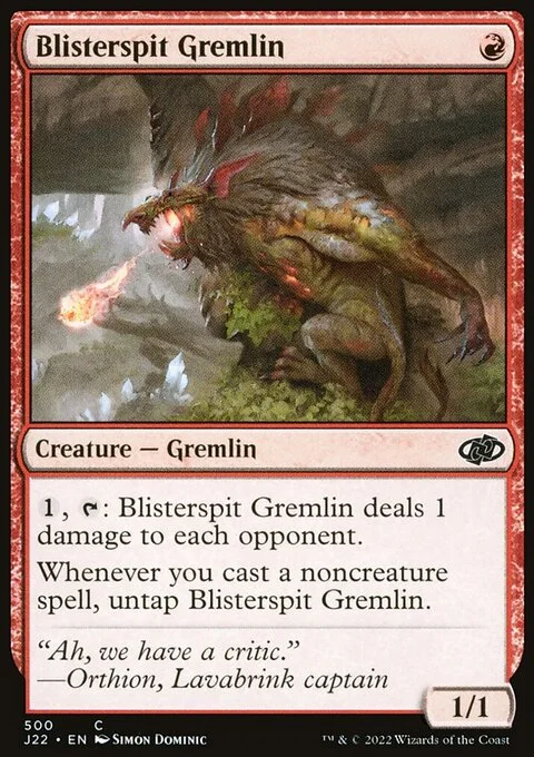 {1}, {T}: This creature deals 1 damage to each opponent. Whenever you cast a noncreature spell, untap this creature.