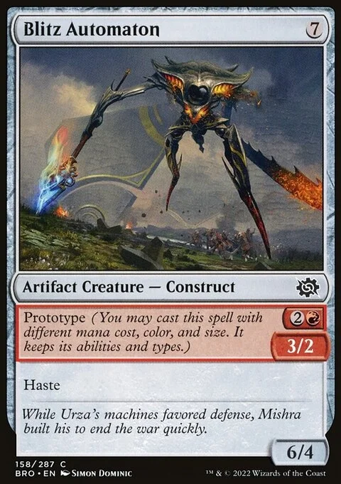 Prototype {2}{R} — 3/2 (You may cast this spell with different mana cost, color, and size. It keeps its abilities and types.) Haste