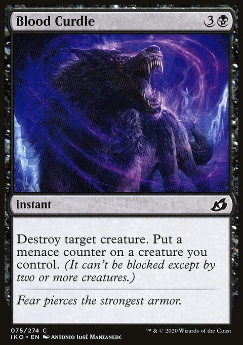 Destroy target creature. Put a menace counter on a creature you control. (It can't be blocked except by two or more creatures.)