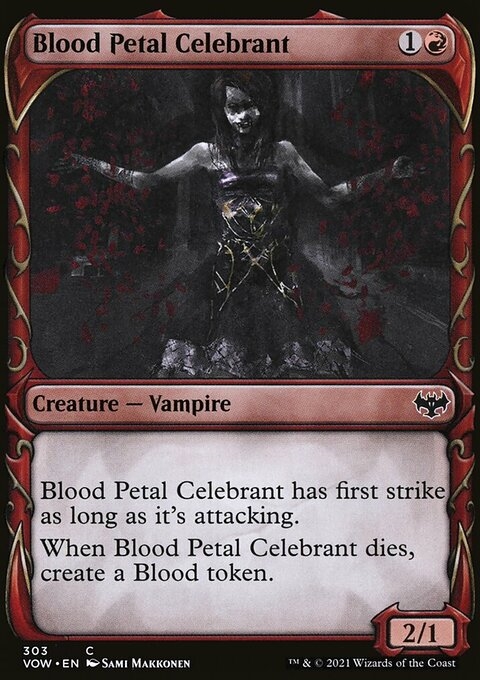 This creature has first strike as long as it's attacking. When this creature dies, create a Blood token. (It's an artifact with "{1}, {T}, Discard a card, Sacrifice this token: Draw a card.")