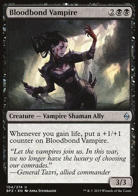 Whenever you gain life, put a +1/+1 counter on Bloodbond Vampire.