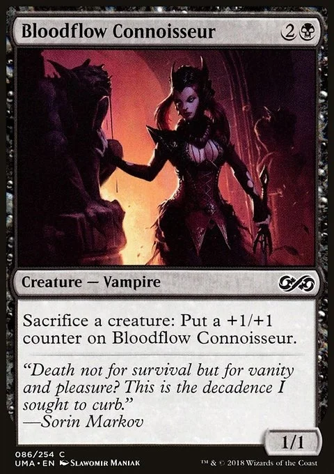 Sacrifice a creature: Put a +1/+1 counter on Bloodflow Connoisseur.