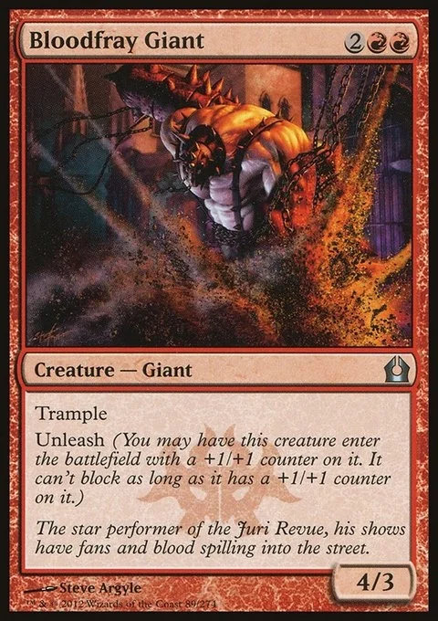 Trample Unleash (You may have this creature enter the battlefield with a +1/+1 counter on it. It can't block as long as it has a +1/+1 counter on it.)