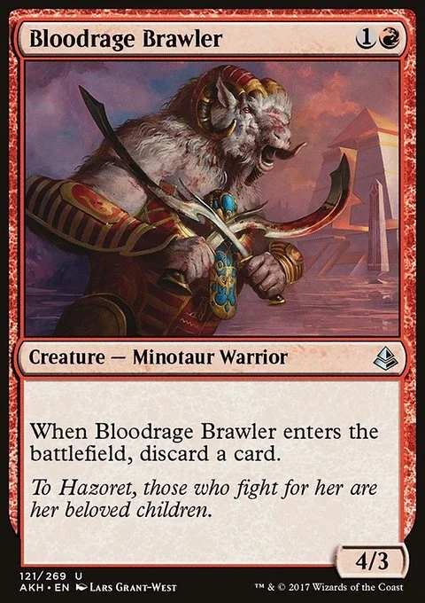 When Bloodrage Brawler enters the battlefield, discard a card.