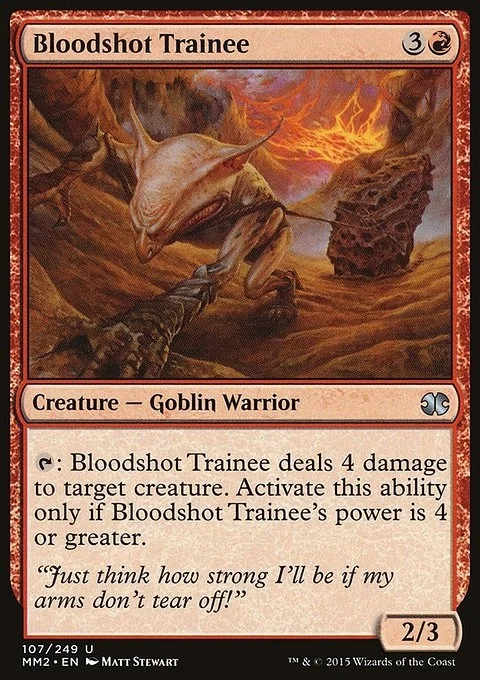 {T}: Bloodshot Trainee deals 4 damage to target creature. Activate this ability only if Bloodshot Trainee's power is 4 or greater.