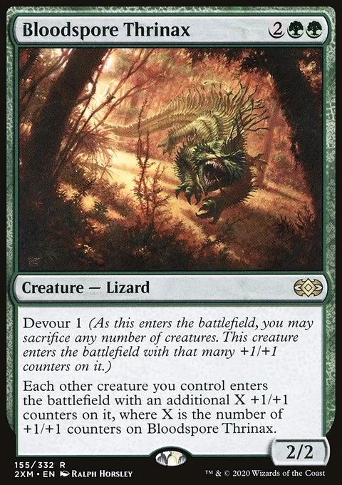 Each other creature you control enters the battlefield with an additional X +1/+1 counters on it, where X is the number of +1/+1 counters on Bloodspore Thrinax.